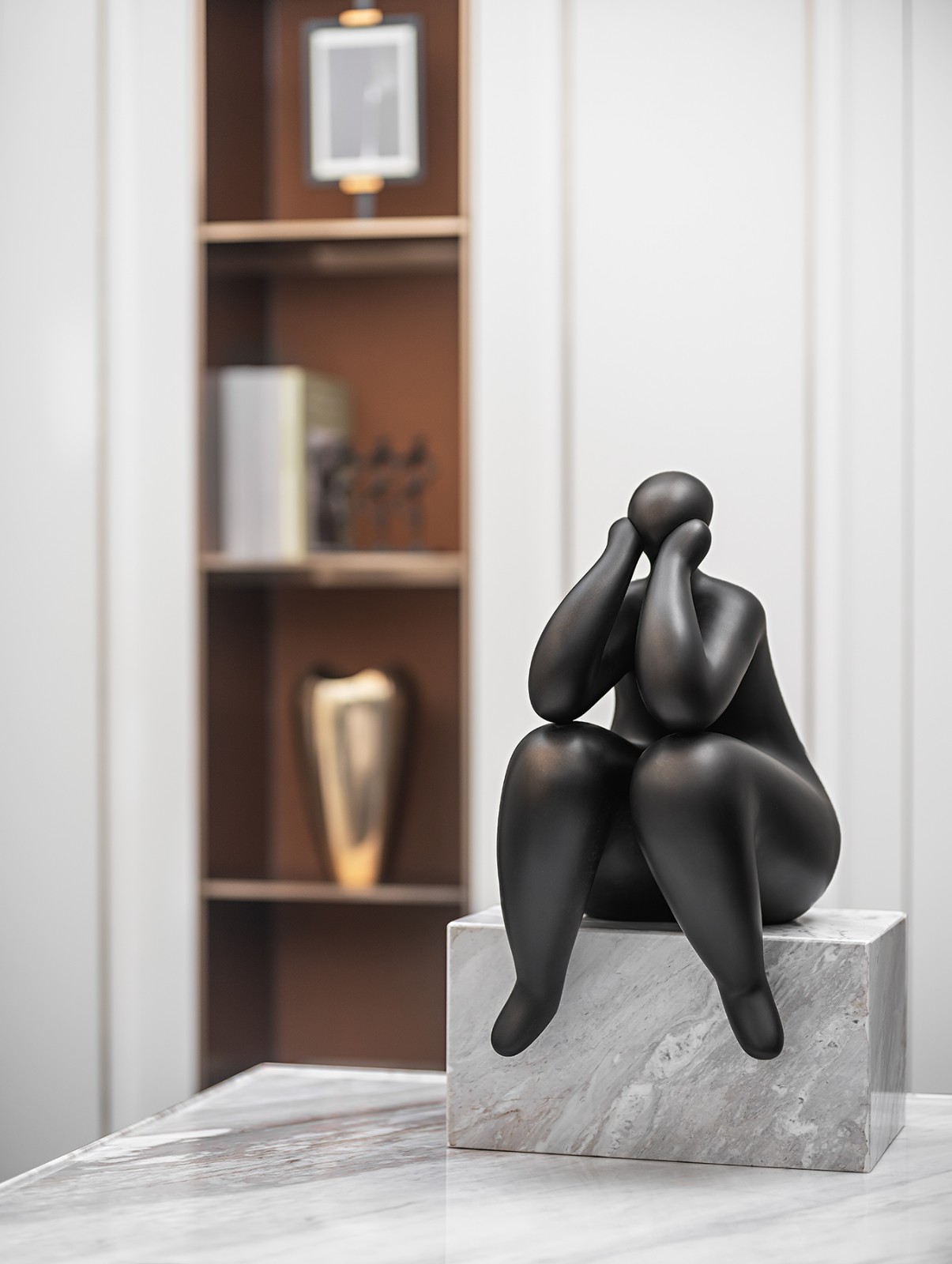 男主人书房则更加硬朗,让空间随着光线的流转更加温暖,工作后,阅读一本心爱的书籍,体现的出生活沉淀与精致,而阅书批文疲倦之时,起身释放娱乐一下,也是生活的轻松体验。