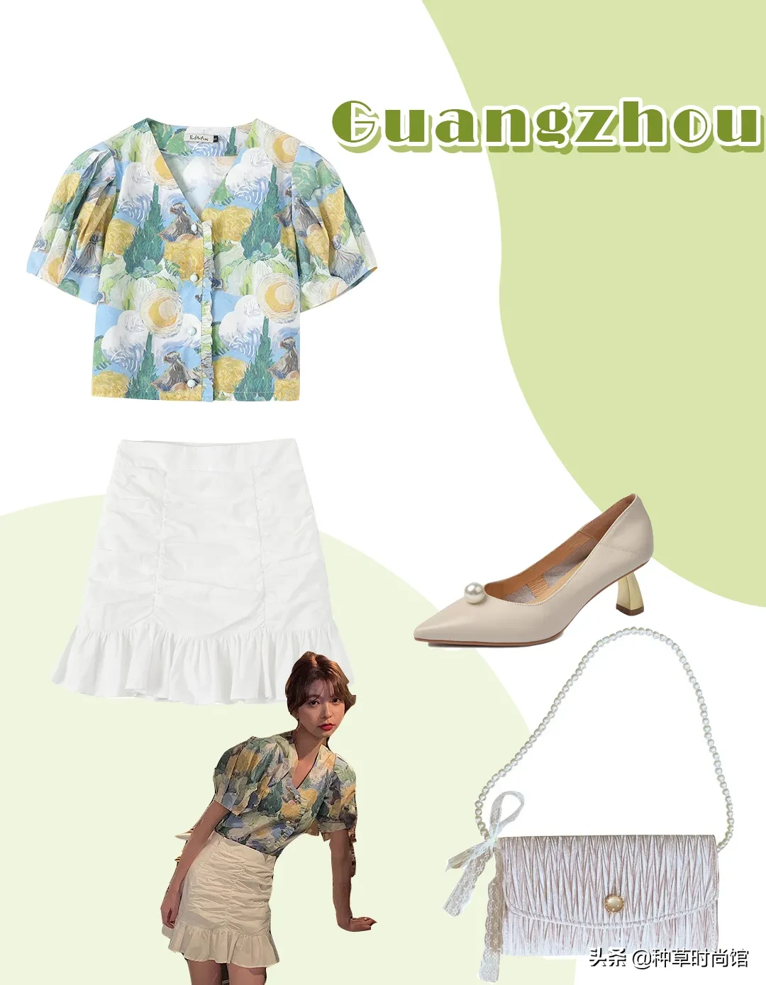 广东女孩这样穿肯定不会错:一件U领上衣露出精致的锁骨,鱼尾裙尽显浪漫南洋风情,再蹬一双猫跟细带凉鞋。快穿上这一身去吃早茶吧~